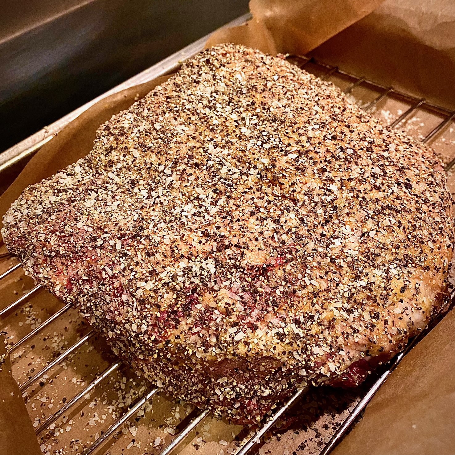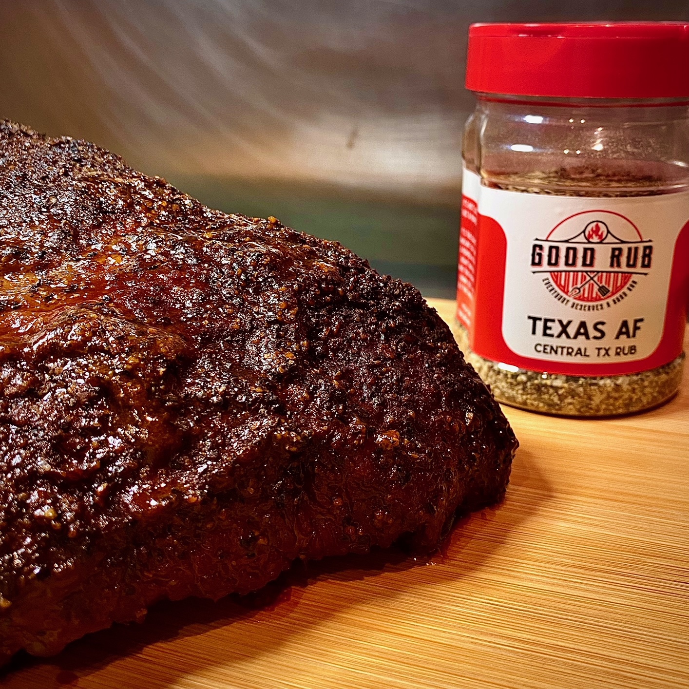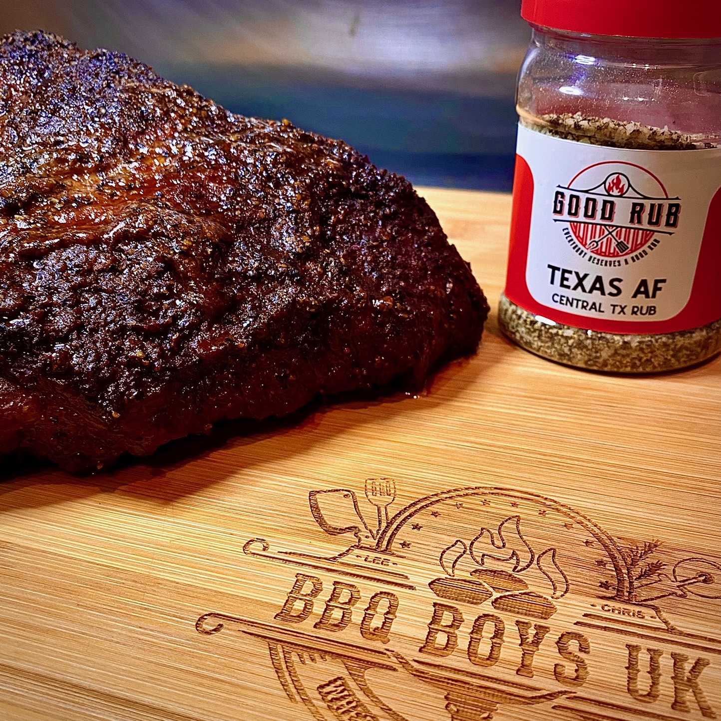 – Season with 50:50 salt and pepper. Or in our case we used Good Rub Texas AF rub. With a sprinkle of smoked paprika.