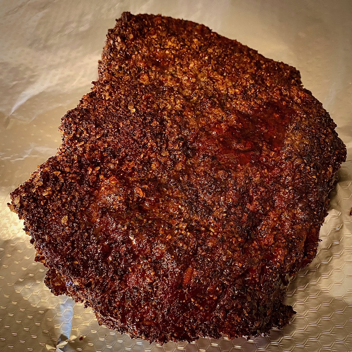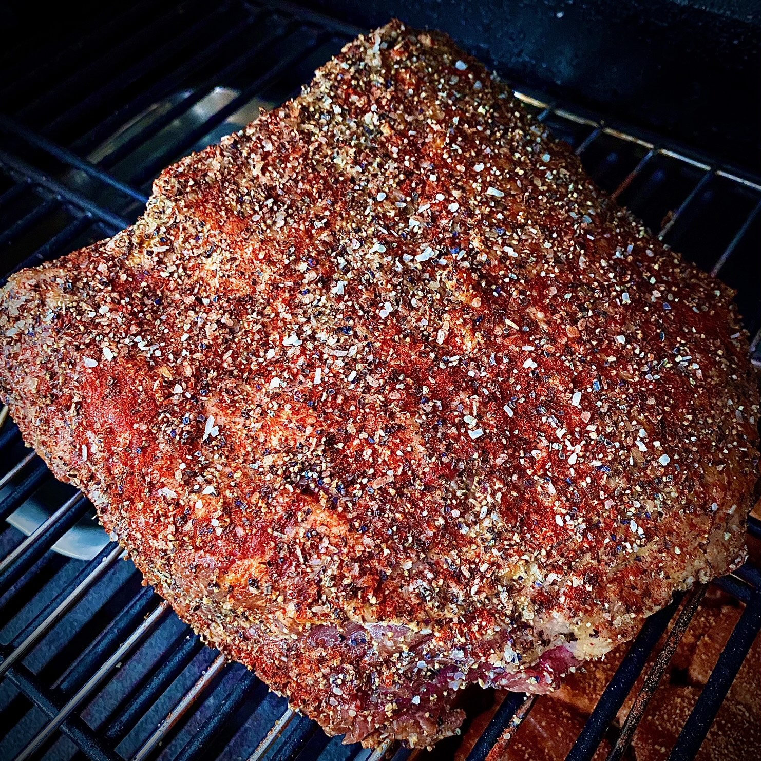 – Let the rub set while you’re start the BBQ. We ran the pit at around 260 degrees f. Perfect for smoking.